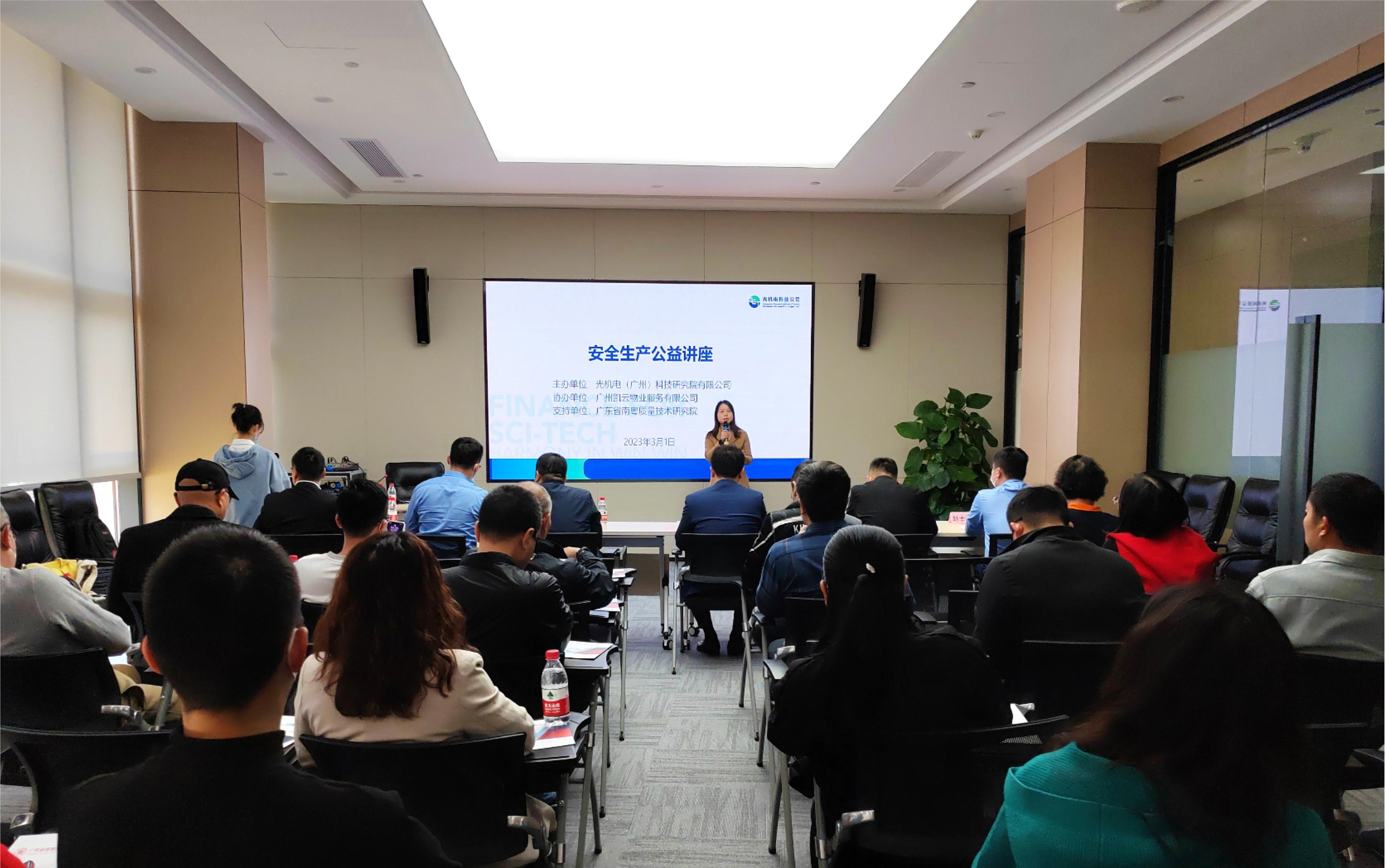 為深入學(xué)習(xí)貫徹習(xí)近平總書(shū)記關(guān)于安全生產(chǎn)的重要論述,落實(shí)省、市、區(qū)生產(chǎn)安全管理部門(mén)的重要文件精神和上級(jí)集團(tuán)的工作部署,進(jìn)一步抓好宣傳管理,提高園區(qū)內(nèi)企業(yè)和員工的安全生產(chǎn)防范意識(shí)和防護(hù)能力,助力園區(qū)內(nèi)企業(yè)的高質(zhì)量發(fā)展,2023年3月1日,光機(jī)電科技公司在科研路3號(hào)A1棟一樓大會(huì)議室舉辦安全生產(chǎn)培訓(xùn)活動(dòng)。本次活動(dòng)邀請(qǐng)了廣東省南粵質(zhì)量技術(shù)研究院李喜明副院長(zhǎng)和覃正淦部長(zhǎng)主講。聯(lián)和街道辦事處安全管理梁軍良隊(duì)長(zhǎng)帶隊(duì)現(xiàn)場(chǎng)指導(dǎo)。園區(qū)企業(yè)代表和光機(jī)電科技公司員工等共47人參加了學(xué)習(xí)活動(dòng)。