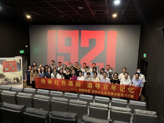 2021年7月22日,為慶祝中國共產(chǎn)黨成立100周年,重溫黨的光輝歷程,感悟黨的初心使命,光機電研究院黨委與高新科控黨支部聯(lián)合組織開展“傳承紅色基因·追尋百年記憶” 紅聯(lián)共建主題黨日活動,組織40多名黨員群眾觀看獻禮建黨100周年的歷史劇情電影《1921》。